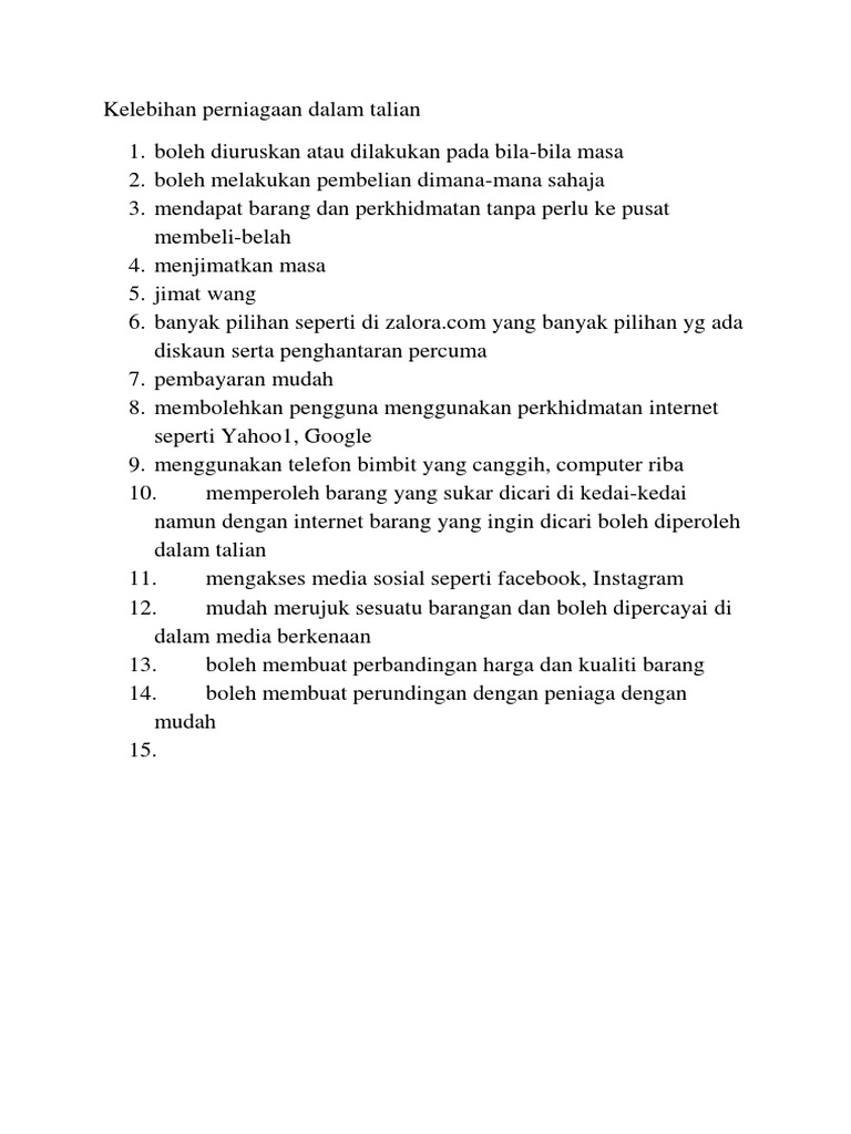 Karangan Kelebihan Dan Kelemahan Perniagaan Atas Talian Pdf