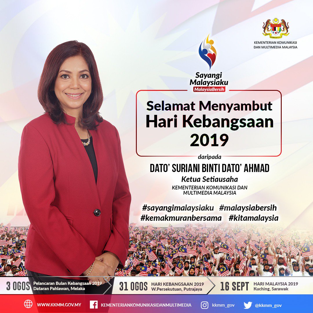Kkmm On Twitter Selamat Menyambut Hari Kebangsaan 2019 Kepada Seluruh Rakyat Malaysia Daripada Dato Suriani Binti Dato Ahmad Ketua Setiausaha Kementerian Komunikasi Dan Multimedia Malaysia Kkmm Sayangimalaysiaku Malaysiabersih